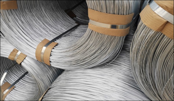 Galvanized iron wire with zinc coating for corrosion resistance.